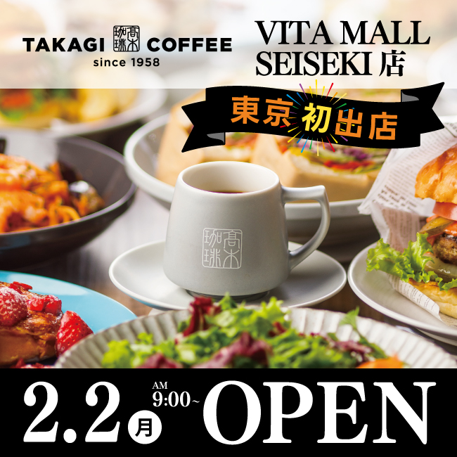 2月2日(月)AM9:00! 髙木珈琲 VITA MALL SEISEKI 店 OPEN !!