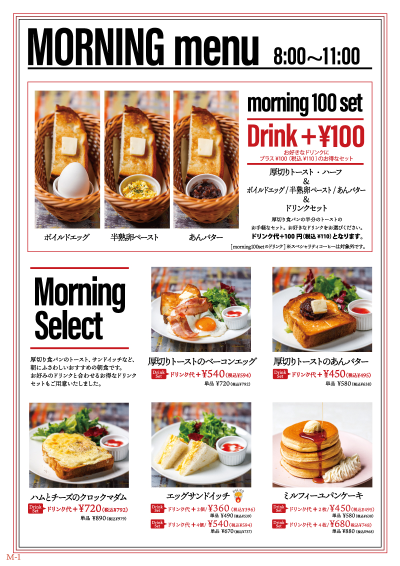 Morning menu 8:00 ~ 11:00